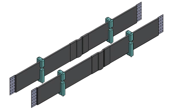 免維護玻璃鋼絕緣低壓交直流母線槽包括波紋板形導體、中間接頭、端部接線端子、玻璃鋼絕緣防護殼及石英砂填充顆粒、固定夾。如圖